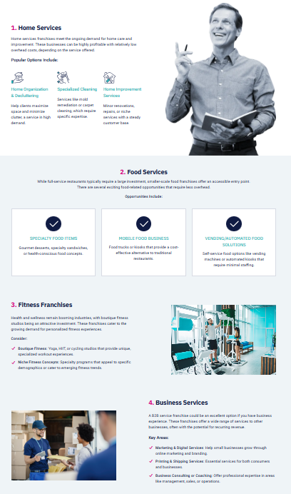 The good news is that many franchises recognize and appreciate your transferable skills. A corporate executive might excel in executive-model franchising, where the focus is on scaling and high-level strategy rather than technical tasks.